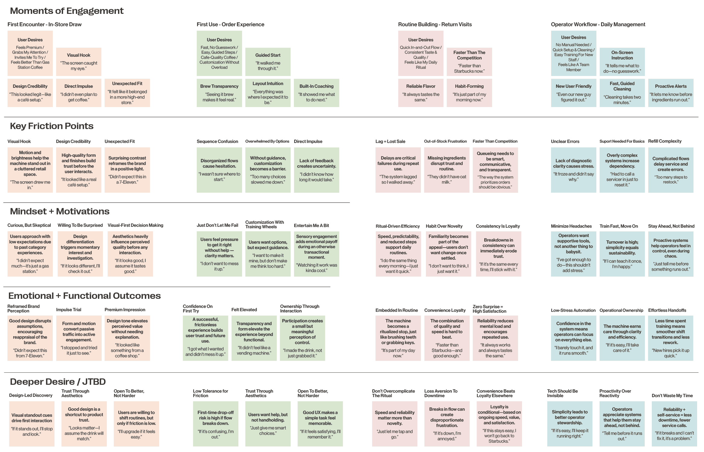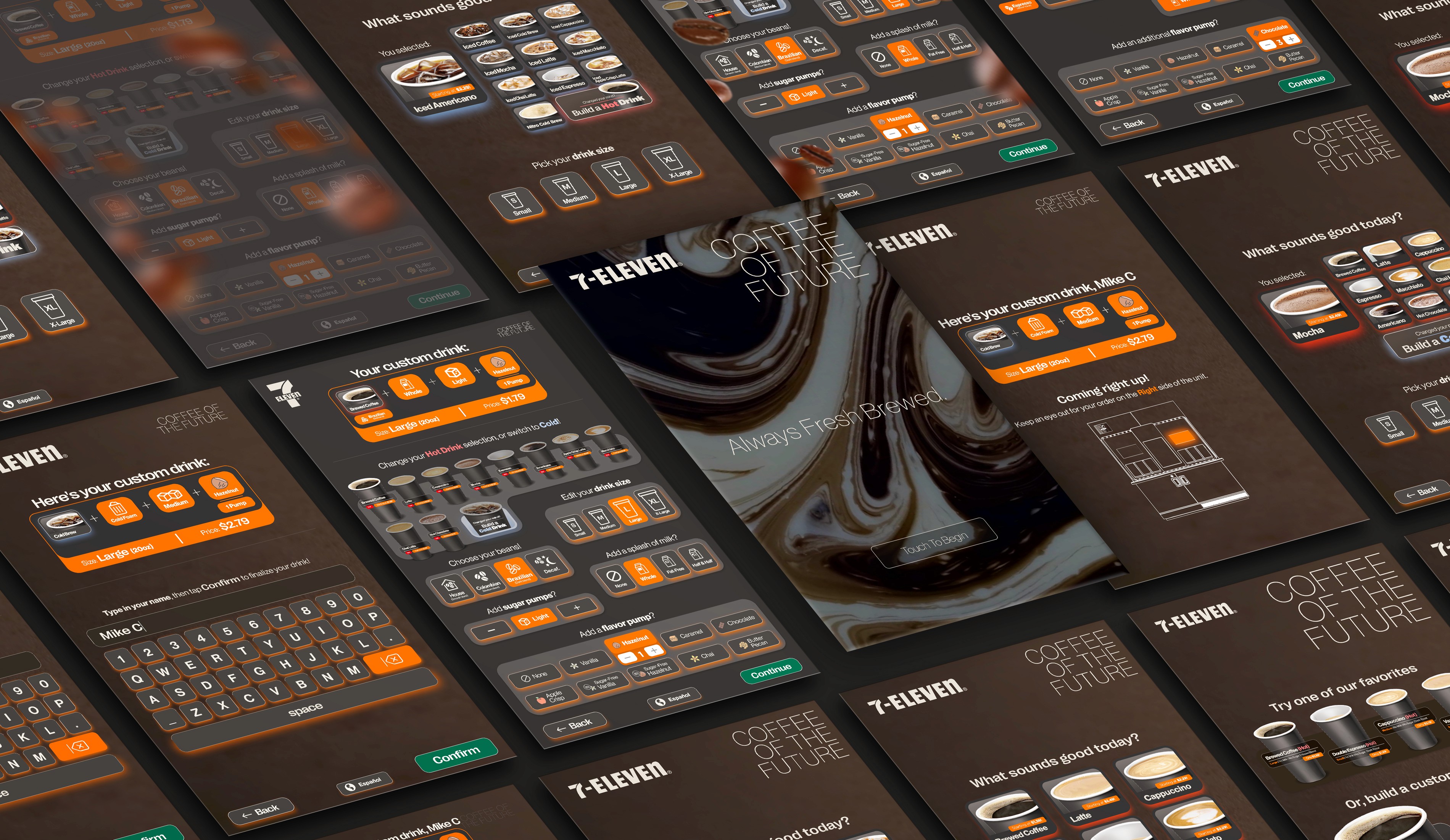 Combining state-of-the-art brewing capabilities with a user-centered interface, the COFU machine delivers an unprecedented range of coffee options with a single tap. My role encompassed research, tactical industrial design, and UI/UX development. By focusing on customer needs, operational efficiency, and 7-Eleven’s bold branding, the machine became a standout feature in the convenience store landscape.