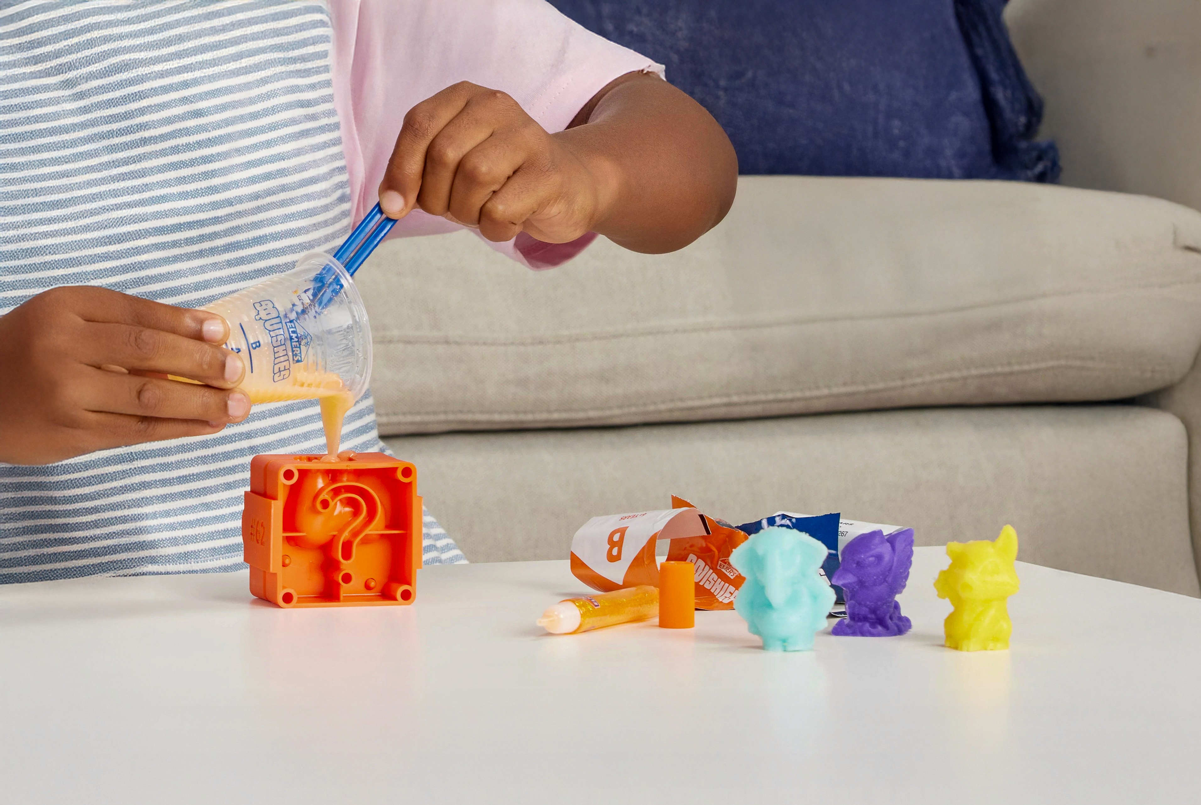 The heart of Elmer’s Squishies lies in its hands-on, DIY nature. Each kit includes a formula that kids mix, pour into a "Mystery Mold," and leave to set. After an hour, they pop out their self-molded squishy character—a moment of discovery that celebrates their creativity.