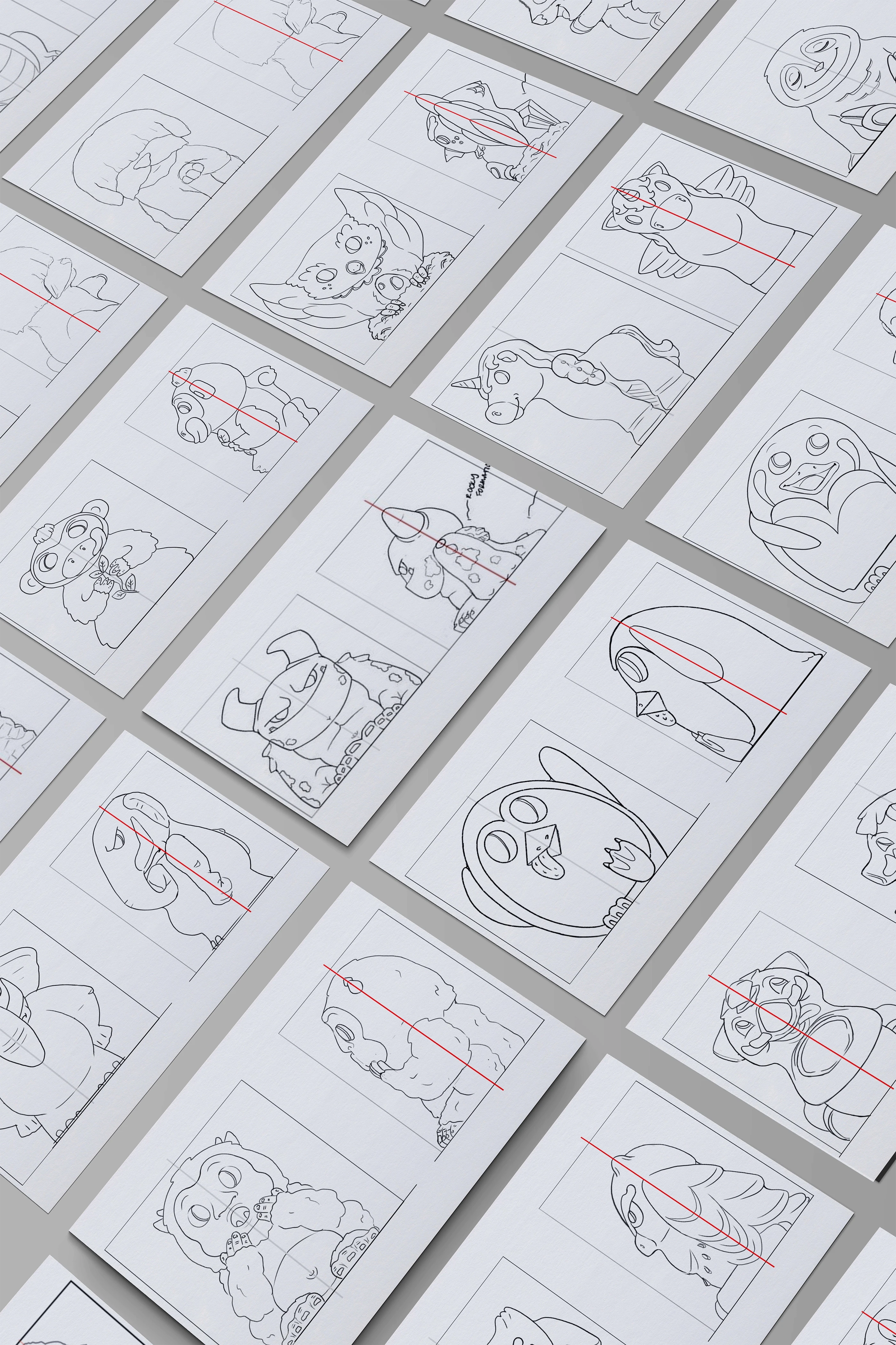 The project began with 2D character sketches, each full of personality and potential. These drawings had a lot of charm: big eyes, wacky limbs, off-balance expressions. But none of them were even close to being manufacturable. They lacked volume, symmetry, and structure. Our job was to bring dimensional clarity to the chaos—without sanding down the fun. The challenge was to bring these sketches to life in 3D, translating their charm into forms that could be easily molded and consistently reproduced.