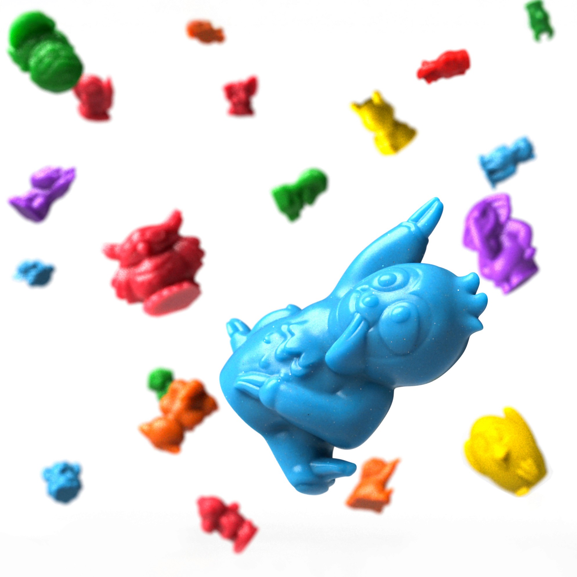 By visualizing these draft angles in real-time - and utilizing Blender's tools to calculate volume for the molding process, we were able to bypass any back-and-forth in parametric engineering analysis, refining character features directly in a decidedly non-technical software—Blender—for efficient, mold-ready designs. We weren’t just sculpting what looked good—we were sculpting what worked. The result: characters that felt expressive and weird in all the right ways, but still popped cleanly out of their molds with minimal flash and no tooling surprises.