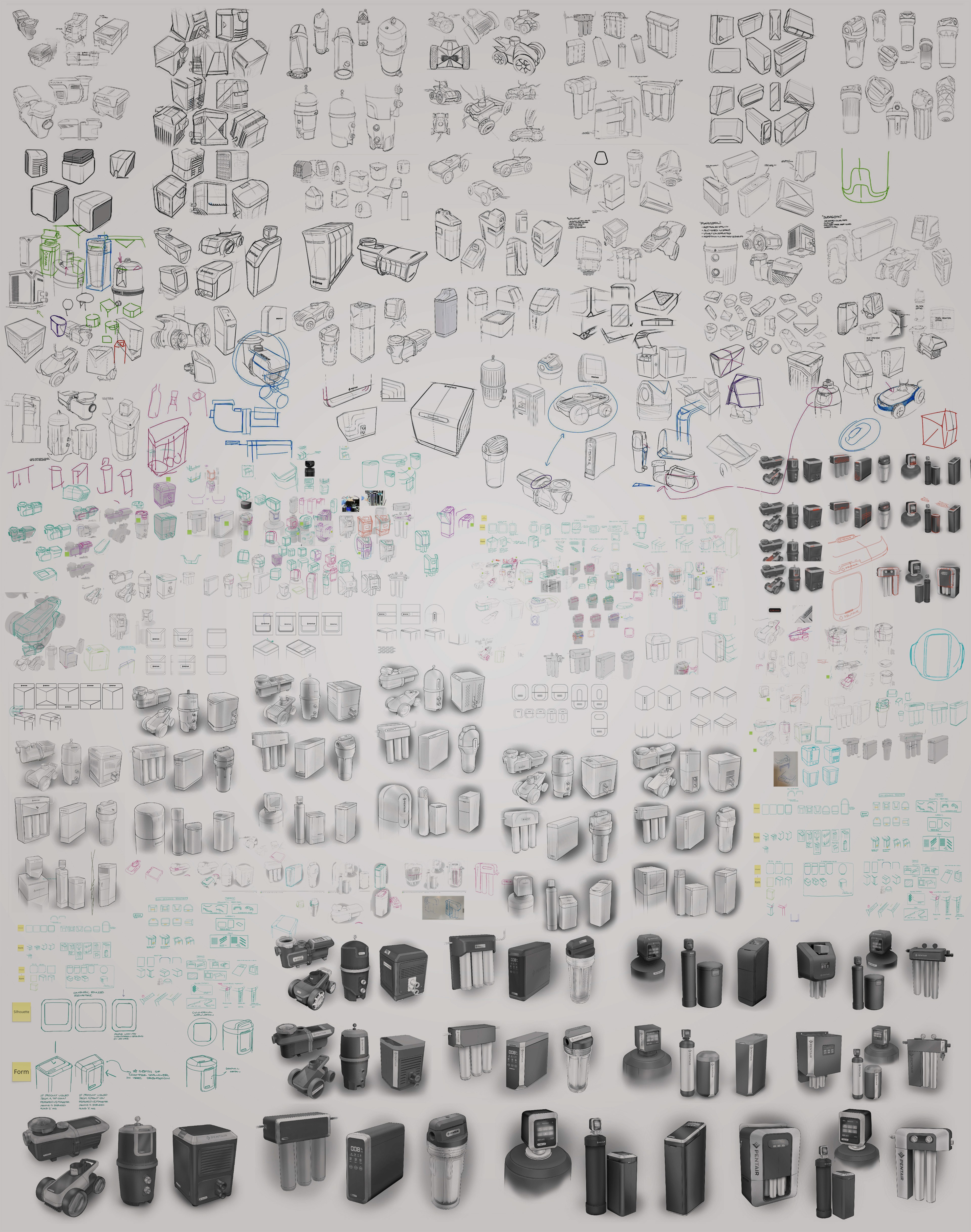 This ideation process involved extensive sketching, early CAD mockups, and cross-category visual testing. Even at this stage, we evaluated manufacturability, cost, and SKU breadth to ensure the system could scale across the portfolio. What emerged was a toolkit of formal languages that could adapt to different form factors while reinforcing a single, unified Pentair identity.