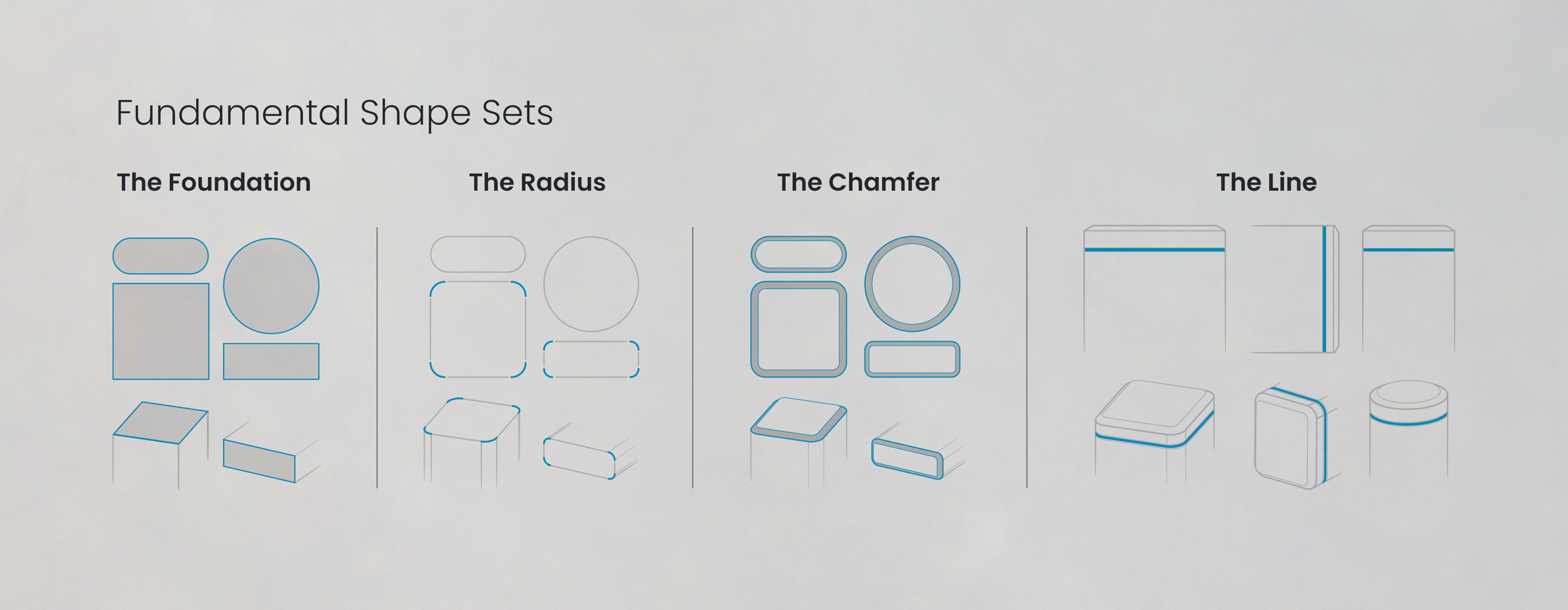 Rather than creating a single “look,” we developed a design system—a flexible architecture of form, proportion, and detail that could be applied across product categories without forcing visual sameness. The selected direction, nicknamed "GEO", relied on softened geometric primitives, proportionally scaled chamfers, and a recognizable "pillowed" silhouette that evoked containment, precision, and quiet strength.