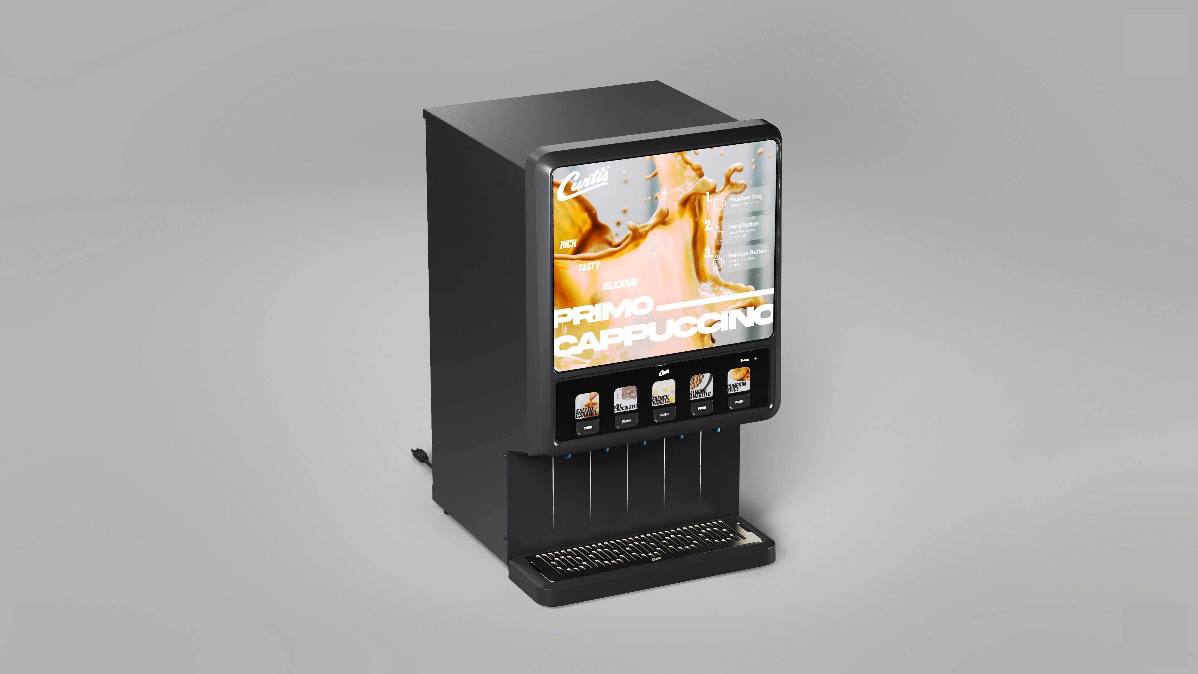 A self-serve cappuccino dispenser redesigned for clarity, durability, and visual polish in high-traffic retail environments.